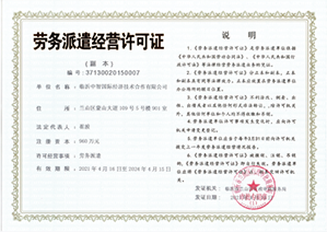 臨沂中智國際經(jīng)濟(jì)技術(shù)合作有限公司具有對外勞務(wù)合作、工程勞務(wù)施工、人力資源服務(wù)、勞務(wù)派遣等資質(zhì),并開展相對應(yīng)的業(yè)務(wù)。是中國建筑安全協(xié)會會員單位,山東省對外投資和經(jīng)濟(jì)技術(shù)合作商會理事單位,山東省和臨沂市先進(jìn)外經(jīng)企業(yè)。